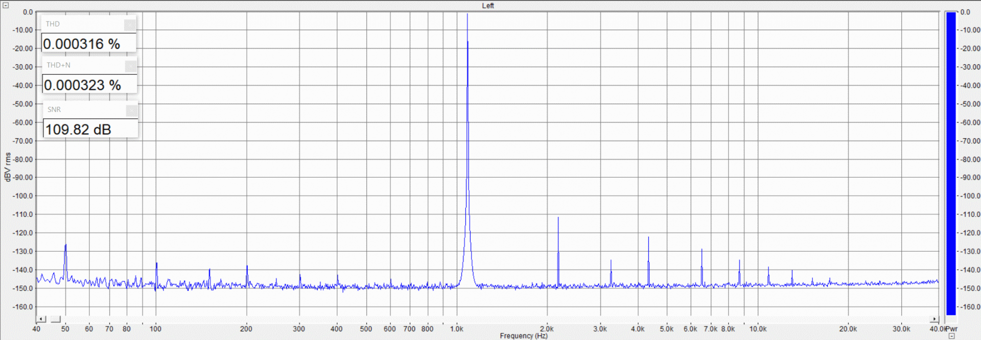 Искажения второго канала получились выше, но это не вина фильтра, а такой попался чип BD34352EKV, надо понимать, что они являются отбраковкой старшей модели BD34301EKV, здесь попался довольно удачный чип. Иногда попадаются и оба канала кривых с уровнем искажений под 0.0008%.