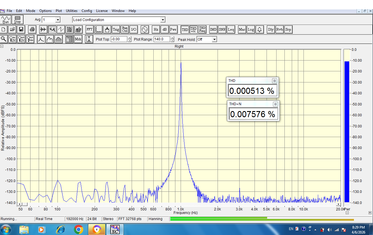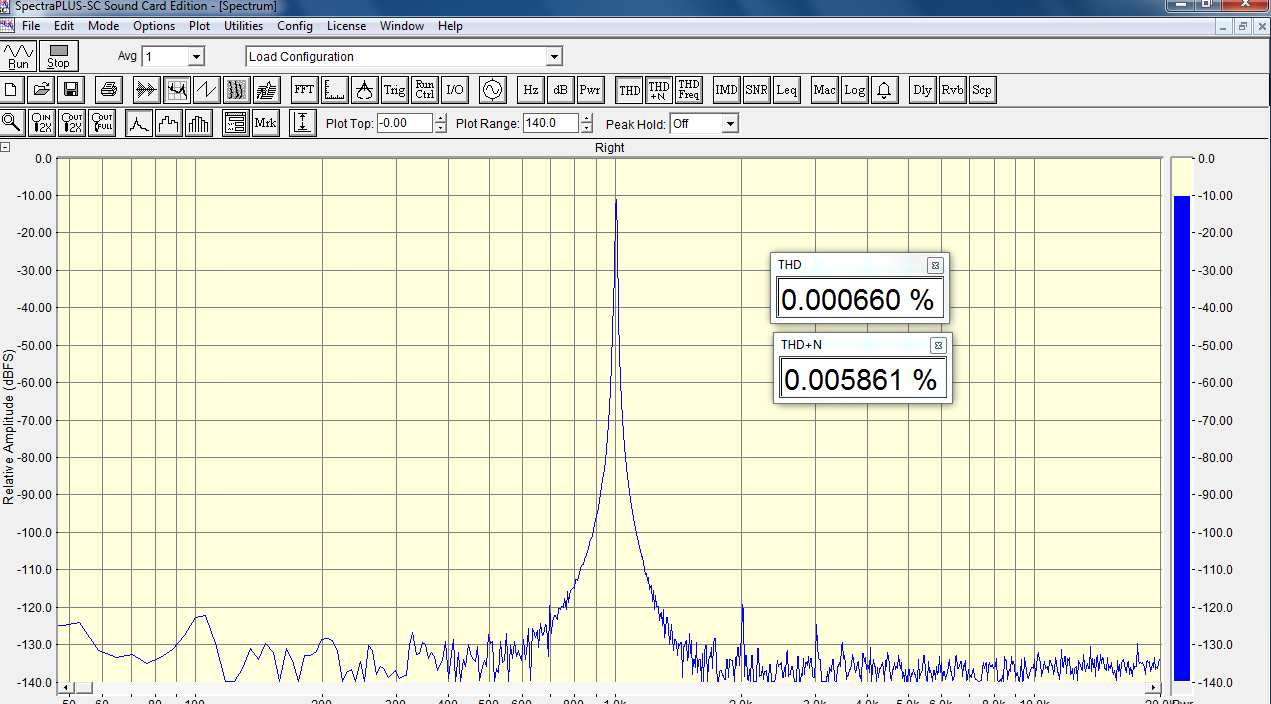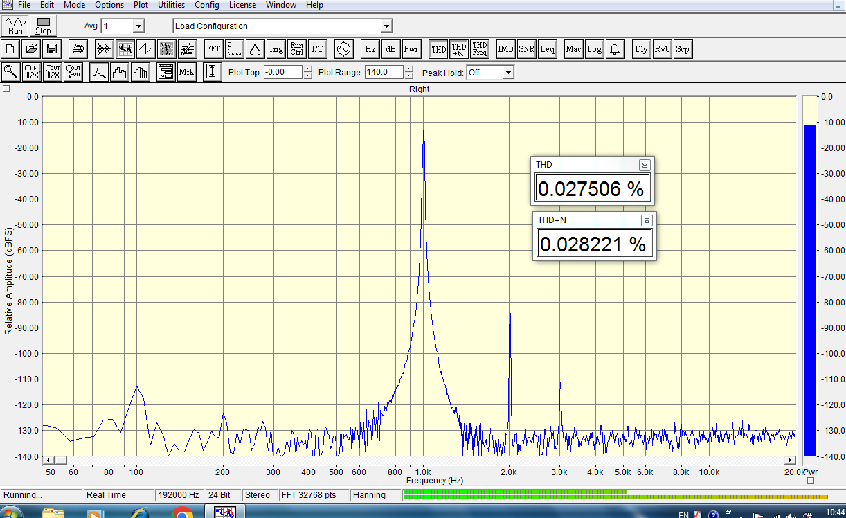 E-MU0404 USB, Сделал wav файл 24/192 1kHz в iZotope и поставил на воспроизведение. В простой версии AH-D6 с гармониками все в порядке