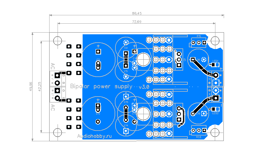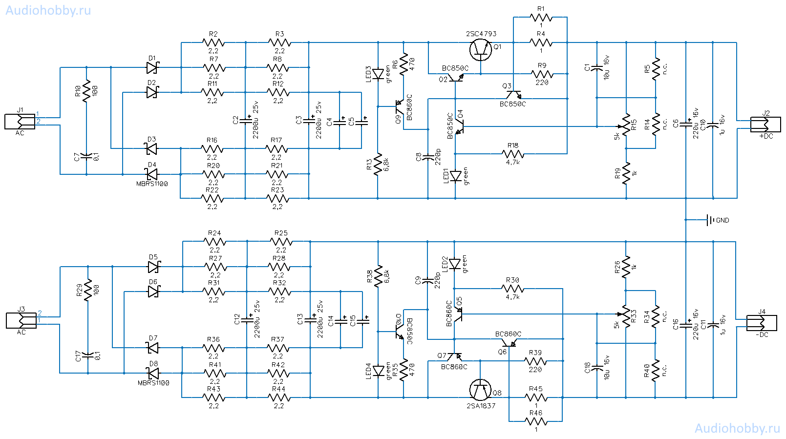 Источник обладает низким уровнем собственных шумов. На плате предусмотрена защита от короткого замыкания.