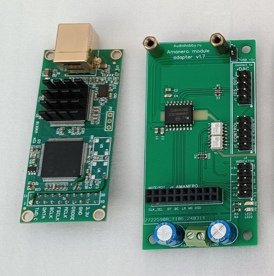 Собранная плата адаптер для USB модуля Amanero (версия 1.7) с модулем Amanero COMBO 384 от LUSYA в Slave режиме