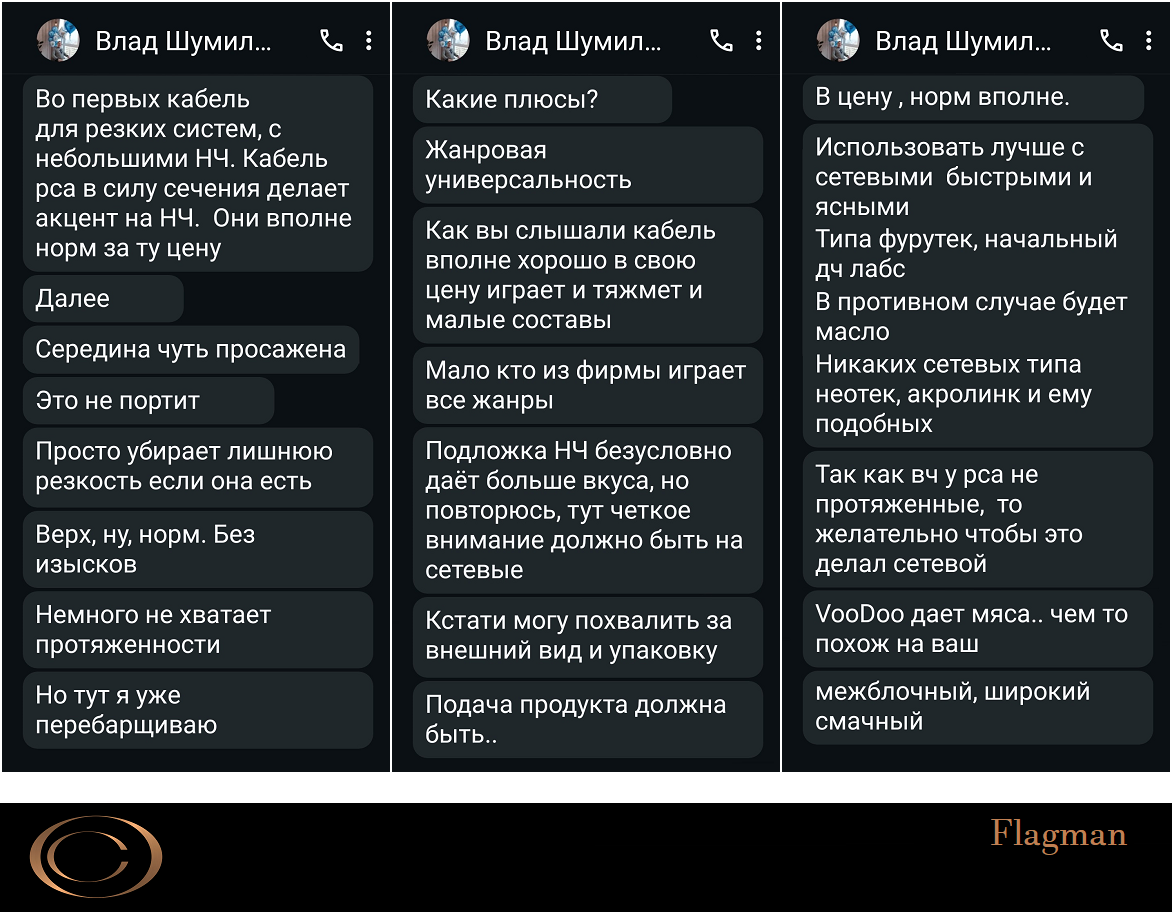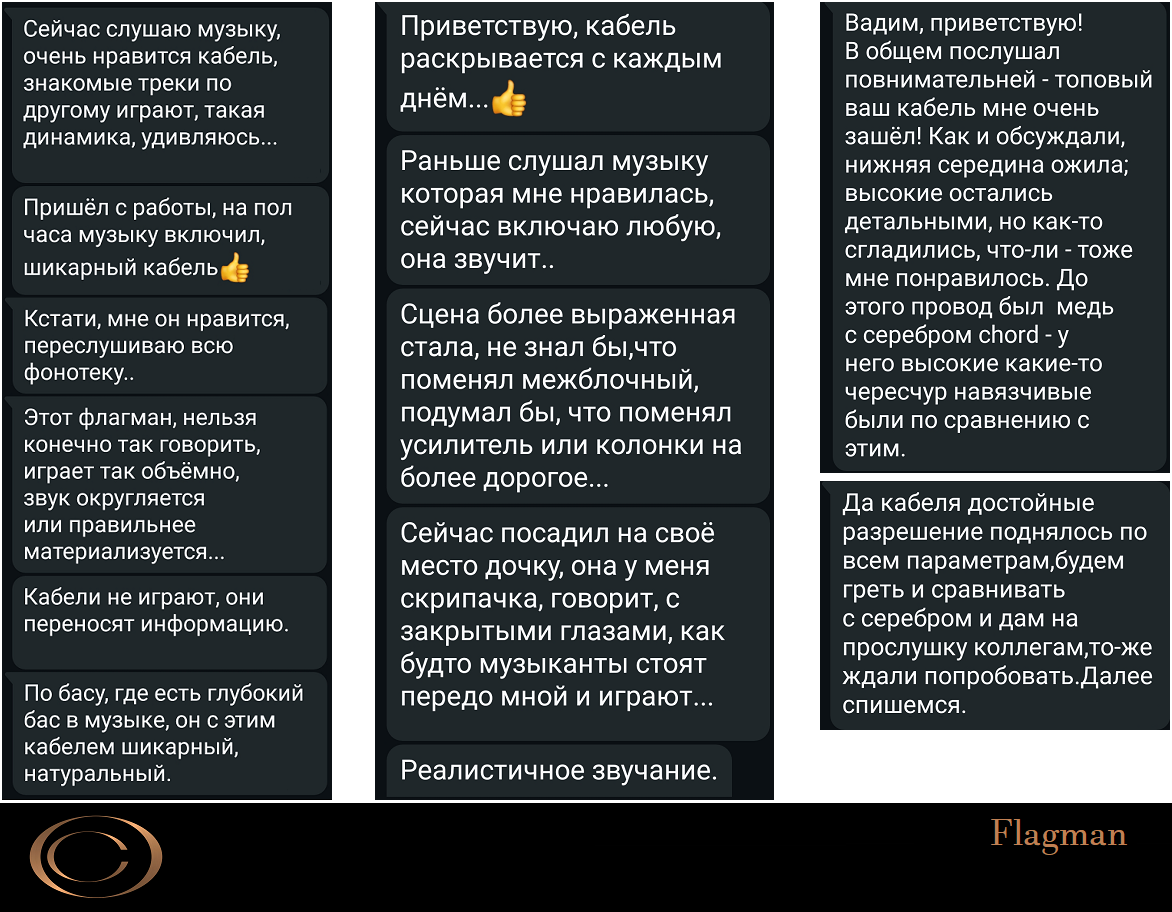 Не надо так резко, отрицать влияние кабельков сложно, а адекватность цены это уже пусть каждый по себе решает, может и правда на слух в сравнении с какими-нибудь ушлыми брендами смотрятся неплохо. Интересно бы получить реальные впечатления слухачей с прослушиваний, хорошо бы со слепыми тестами.