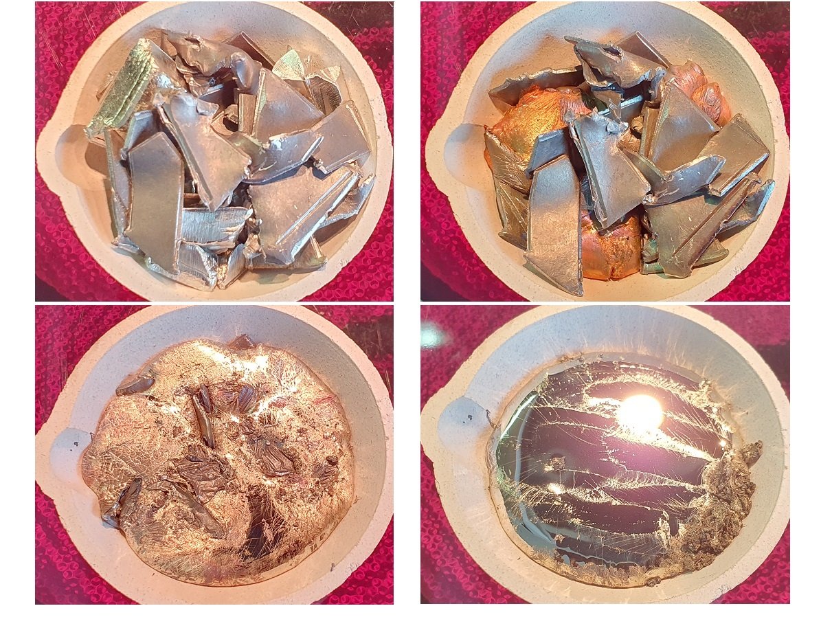 В центре — катодная медь, поверхность которой из сплава серебра и цинка.