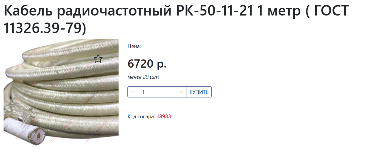Радиочастотный кабель с волновым сопротивлением 50 Ом.